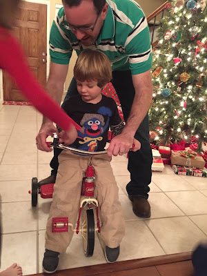 Grey also got a little remote control car and this tricycle...